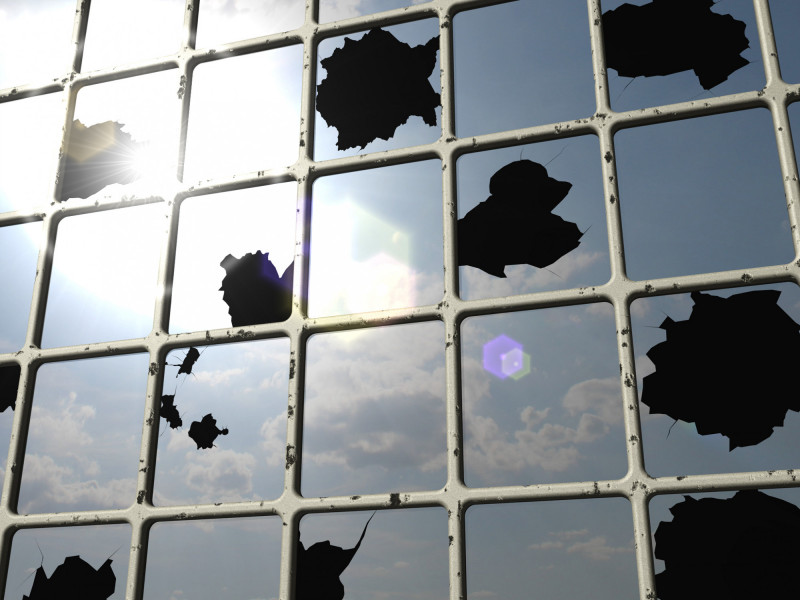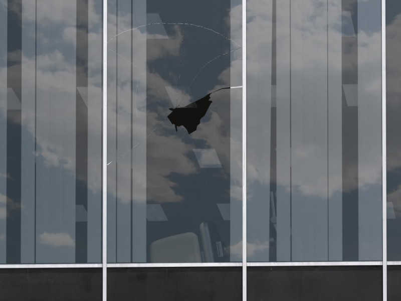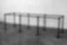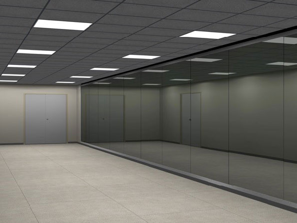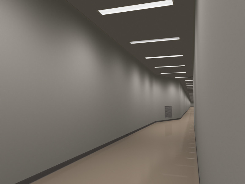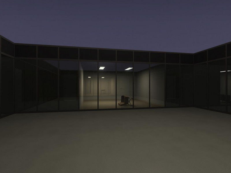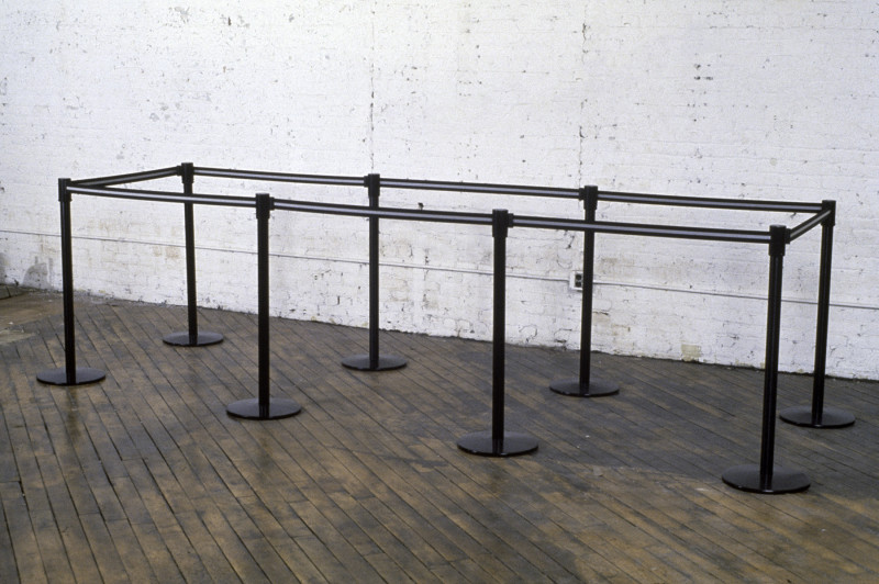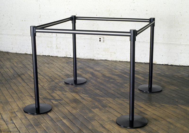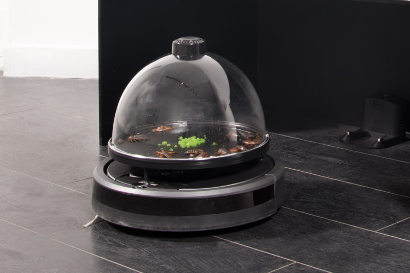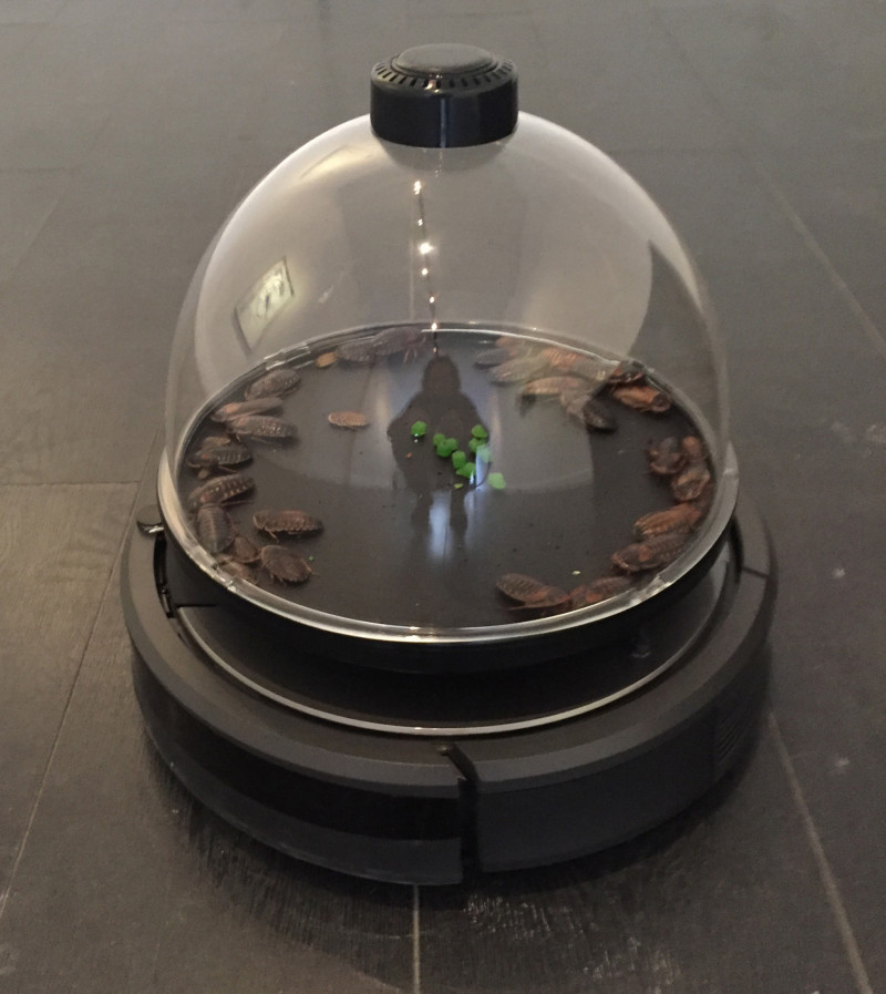 Ceiling tiles, metal studs, hardware, fluorescent lights, carpet, Sony AIBO ERS-310 robot, inkjet prints