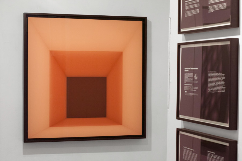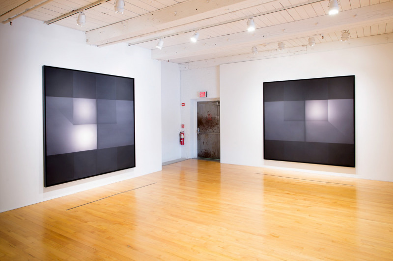 Untitled 6000° K / 7000° K / 8000° K) [after Josef Albers], 2011-2014, and Inteligence 1-3, 2016, installation view, Kai Matsumiya Gallery, 2017