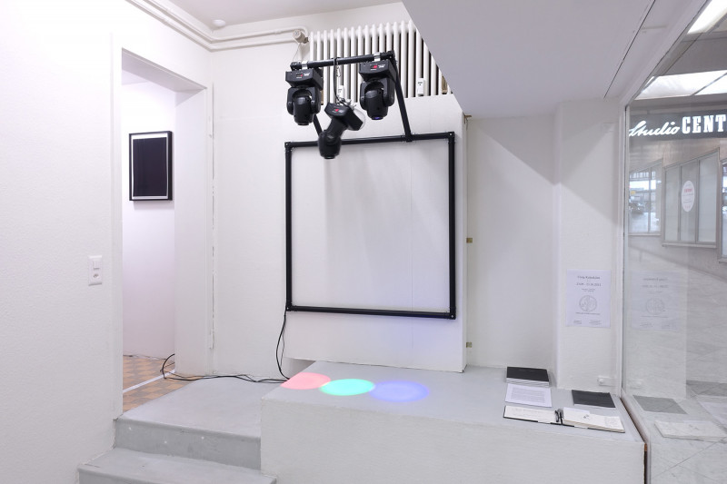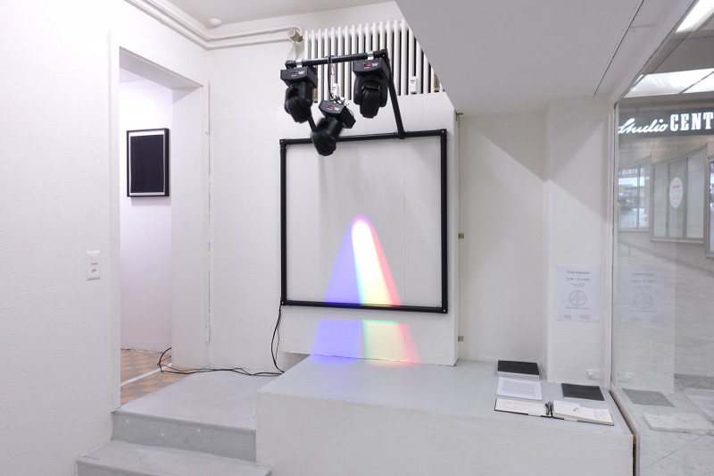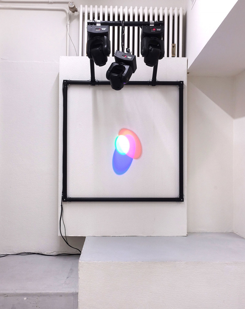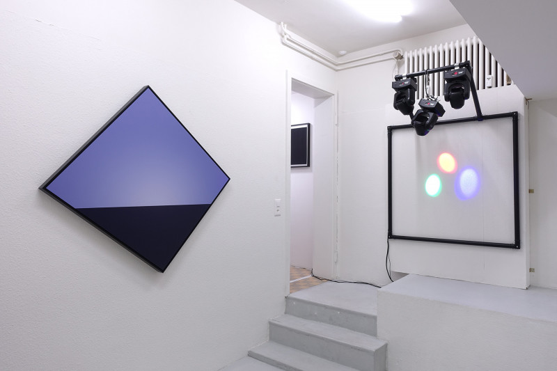 Untitled (3000° K / 4250° K) [after Josef Albers], 2011-2014, and Inteligence 4-6, 2016, installation view, Kai Matsumiya Gallery, 2017