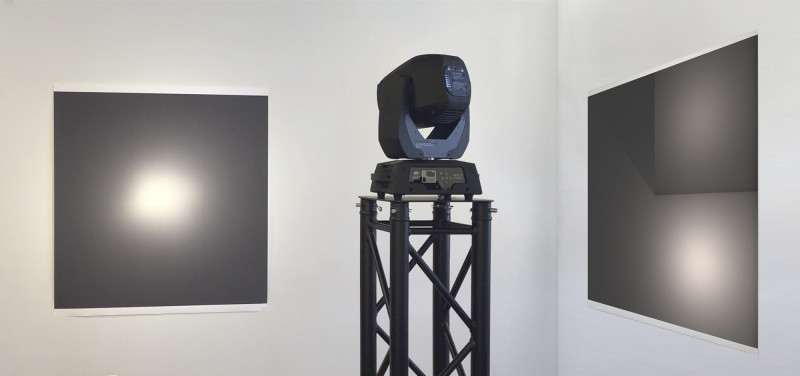 Untitled (3000° K / 4250° K) [after Josef Albers], 2011-2014, and Inteligence 4-6, 2016, installation view, Kai Matsumiya Gallery, 2017